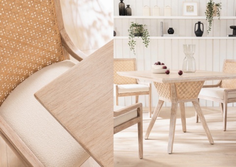 artisan artisan dining chair Mahogany - French Grey Kawung - Natural Fixed Seat Cushion - Ivory w:60 d:55 h:88 sh:49.5 CM artisan dining table Mahogany - French Grey Kawung - Natural w:100 d:100 h:76 CM 22 23