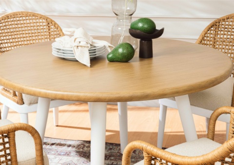 autumn autumn dining chair Mahogany - Solid White Exotic Loom 3mm - Black Glaze Fixed Seat Cushion - Ivory w:55 d:60.5 h:88 sh:49.5 CM autumn dining table Mahogany - Natural Splatter Mahogany - Solid White Ø:120 h:76 CM 30 31