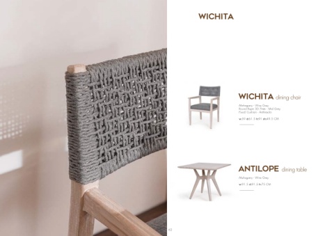 wichita wichita dining chair Mahogany - Wire Grey Round Rope 3D 7mm - Mid Grey Fixed Cushion - Anthracite w:59 d:61.5 h:91 sh:49.5 CM antilope dining table Mahogany - Wire Grey w:91.5 d:91.5 h:75 CM 62 63